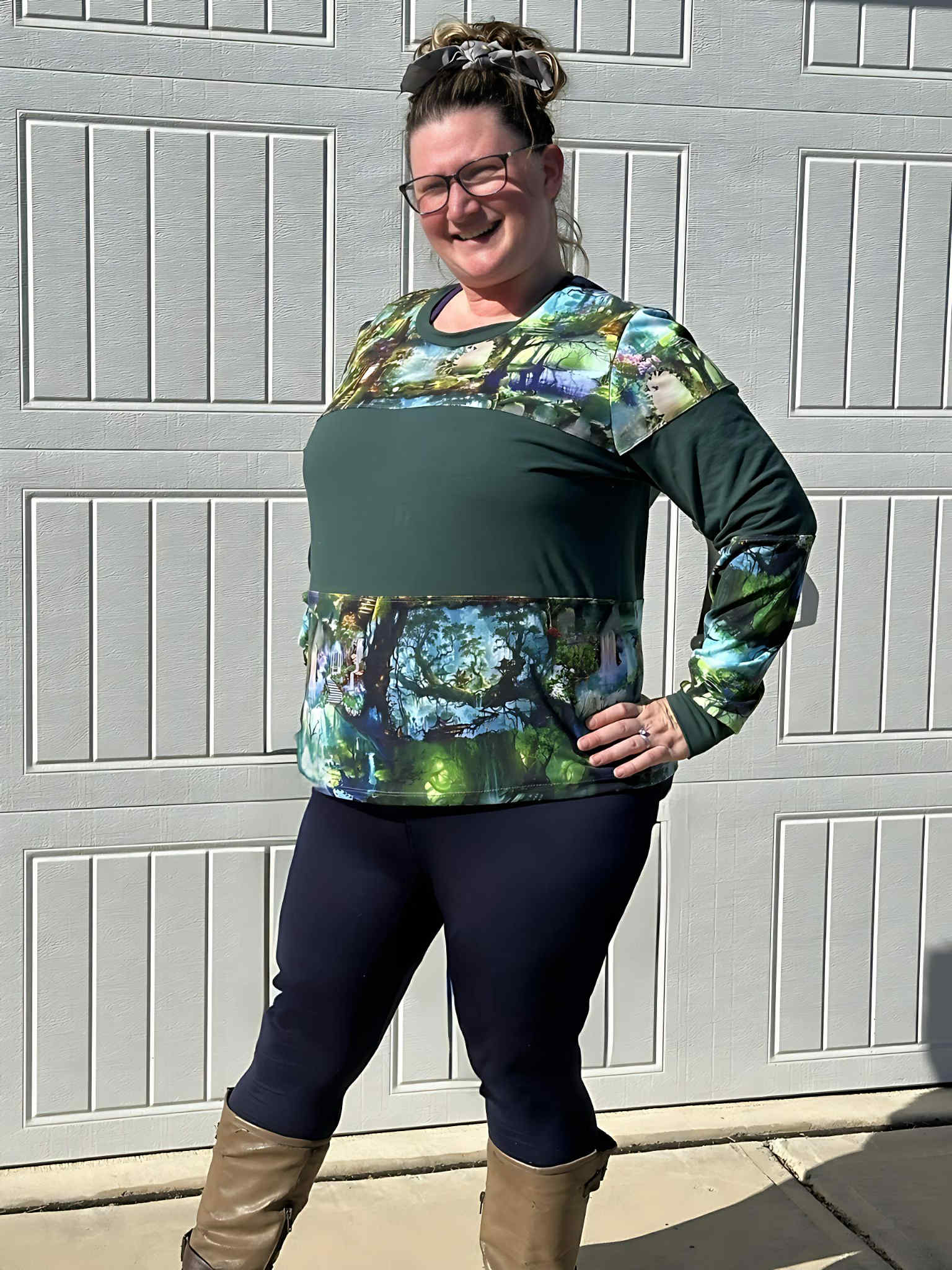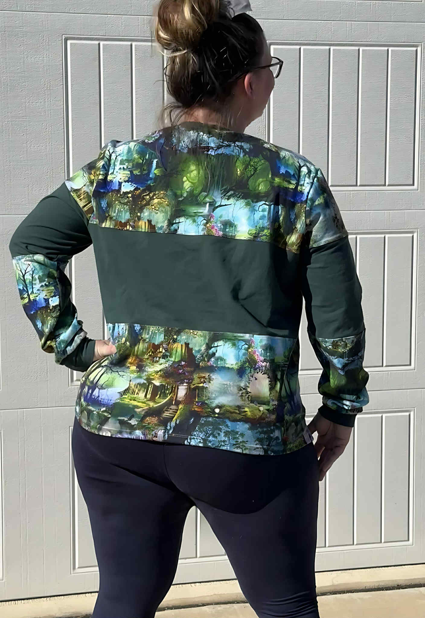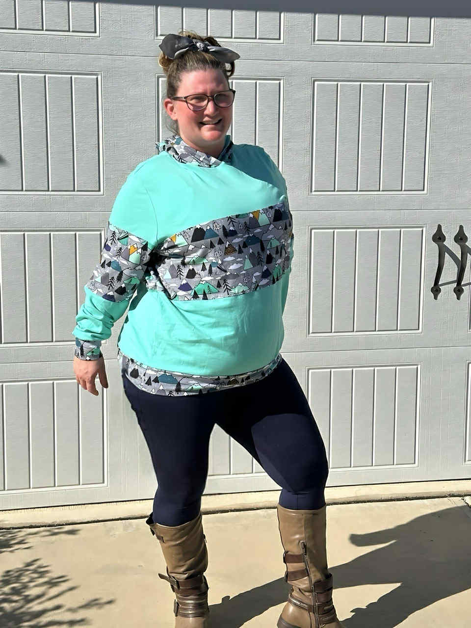 Pictures show a Green Sweater Option with the "Hemmed" bottom, and a Mountain Aqua with a Hood and "Banded" bottom.